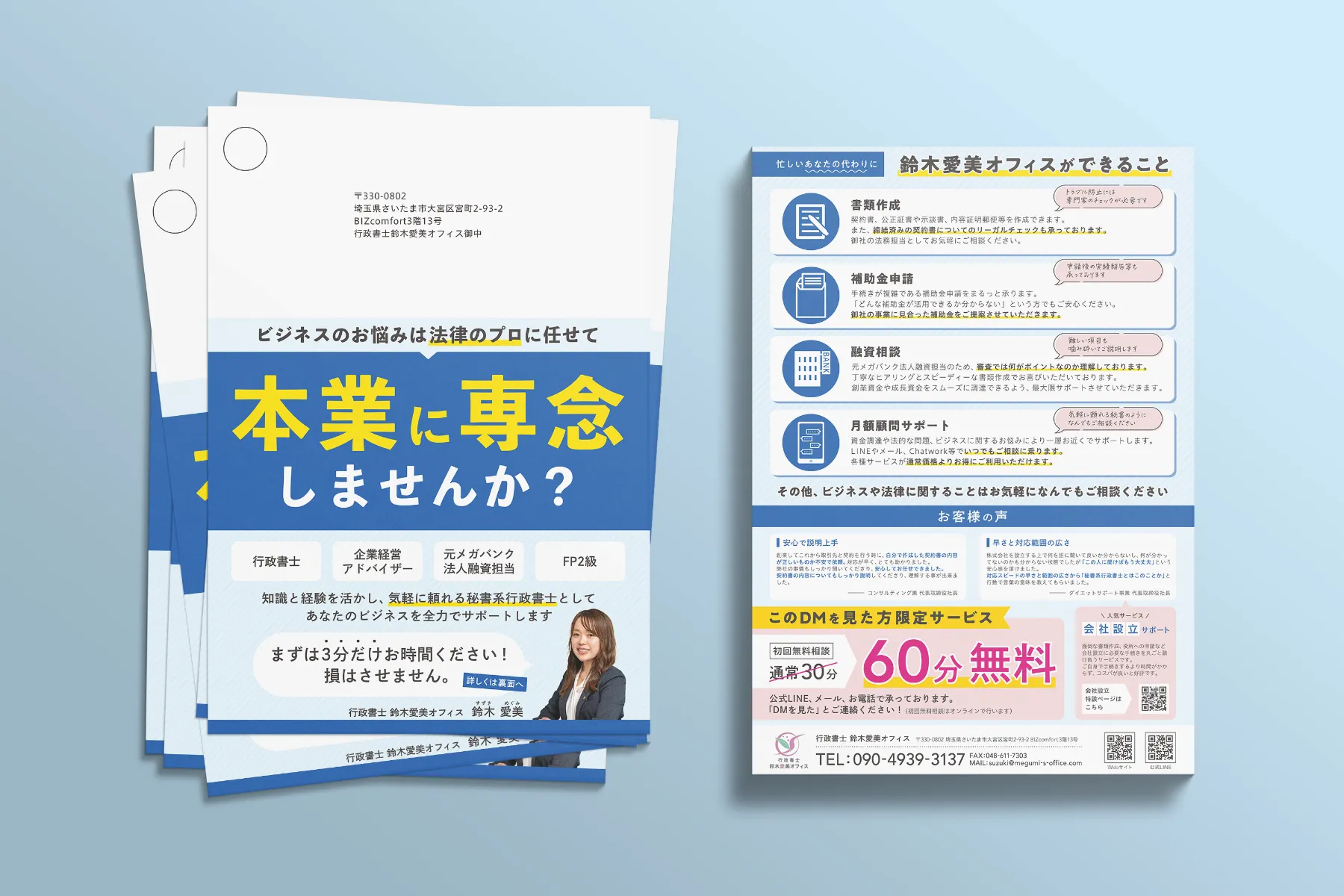 さいたま市 行政書士 鈴木愛美オフィス A4DMハガキ
